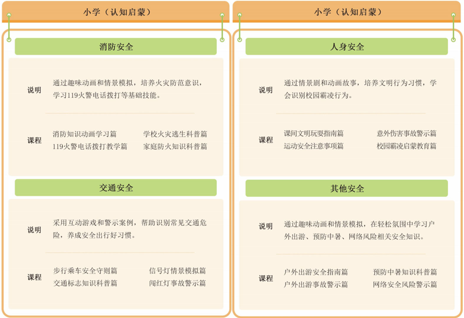 侧重基础安全认知启蒙,通过互动游戏、情景模拟等方式,帮助小学生建立安全意识,助力安全守护。